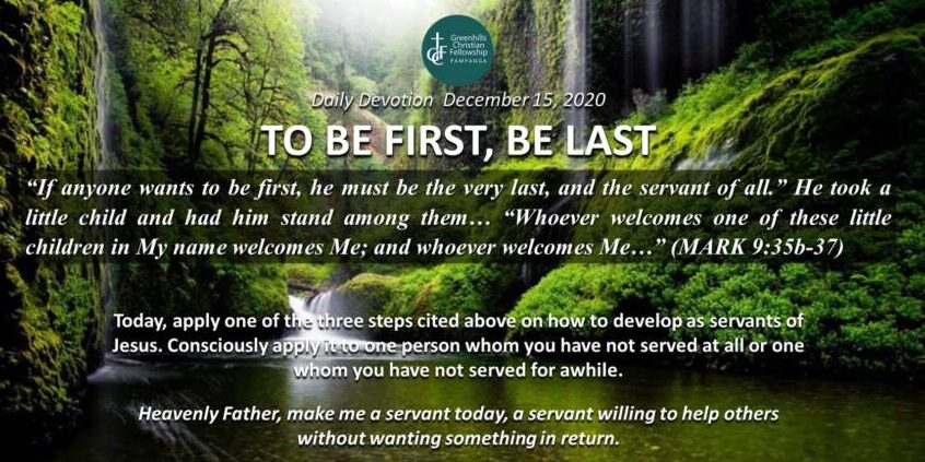 Jesus’ words are intriguing: “If anyone wants to be first, he must be the very last.” How can a person who is last be the first? Jesus solves this dilemma by adding the words “and the servant of all.” That’s the key! A person considered lowly in the sight of man (i.e, being last) is valued as important in the eyes of God (i.e., being last), if that person is a servant of all.